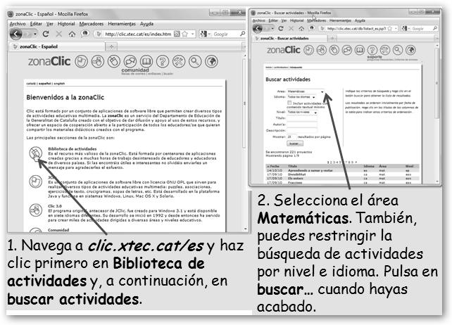 Si encuentras problemas al cargar los applet, descarga la máquina virtual Java en www.java.com/es/download. En Ubuntu instala JClic desde Aplicaciones, Centro de software de Ubuntu. |