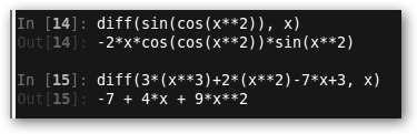 * In[14] , In[15] e In[17]: Derivamos varias funciones. ¡Fíjate!, siempre tienes que indicar sobre que variable. |