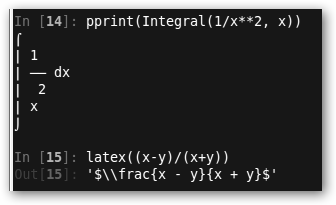 * In[14]: También podemos escribir con SymPy nuestras expresiones de la forma “natural” en la que estamos acostumbrados. * In[15]: Muestra el código LaTex de una expresión. |