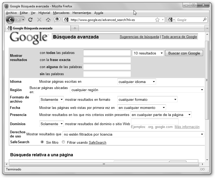 Al hacer clic en Búsqueda avanzada, Google nos brinda las siguientes posibilidades: