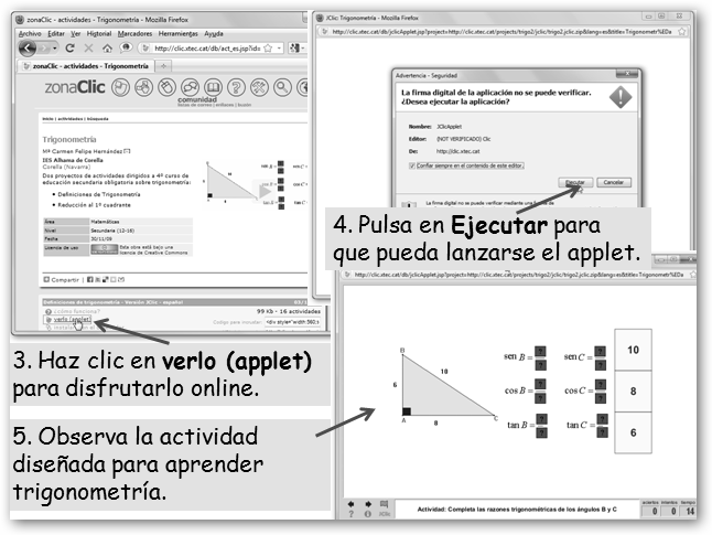 Si encuentras problemas al cargar los applet, descarga la máquina virtual Java en www.java.com/es/download. En Ubuntu instala JClic desde Aplicaciones, Centro de software de Ubuntu. |