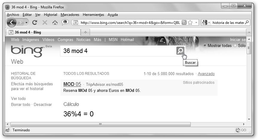 también resuelve cálculos (sin(0), 36 modulo 5, 4/3,etc), realiza