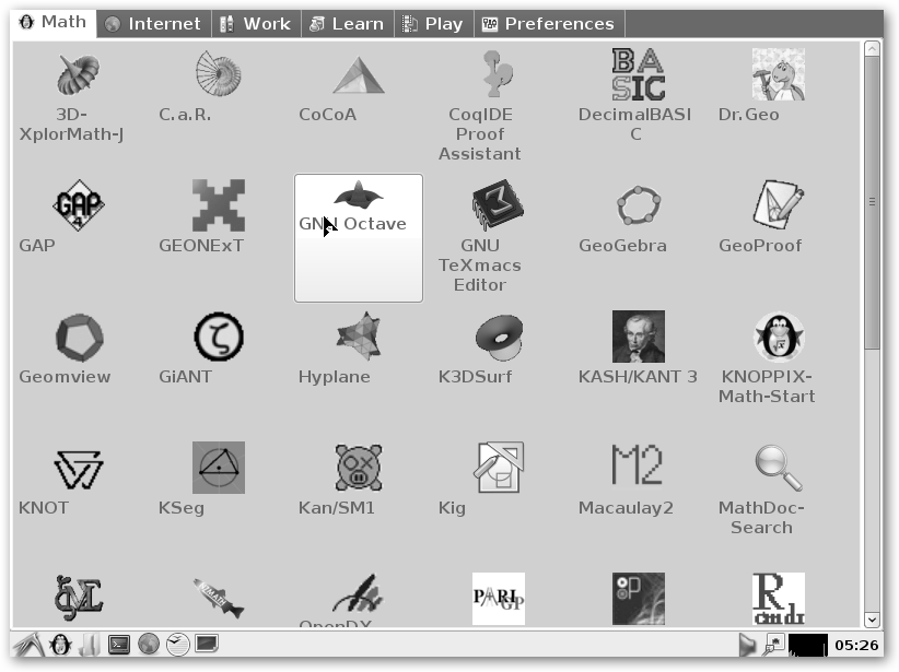 Knoppix específicamente orientada al universo de las mates. El pero
