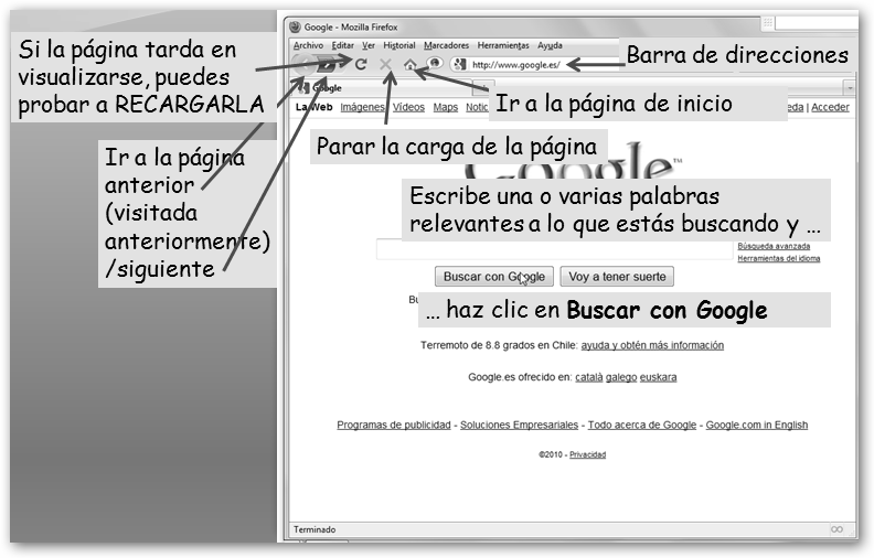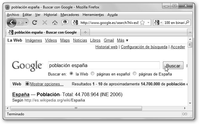 Lanza Mozilla Firefox (si no lo tienes, salta al apartado Instalando todo lo que necesitas en Windows) y en la barra de direcciones escribe www.google.es.