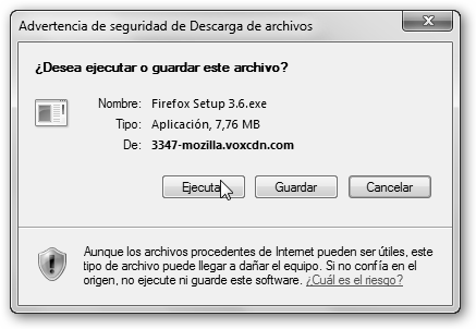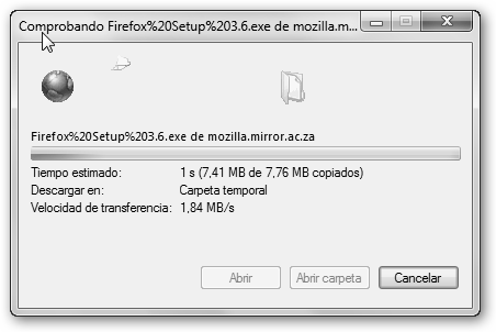 Haz clic en Ejecutar para que se inicie la descarga del instalador de Firefox y espera un poco.