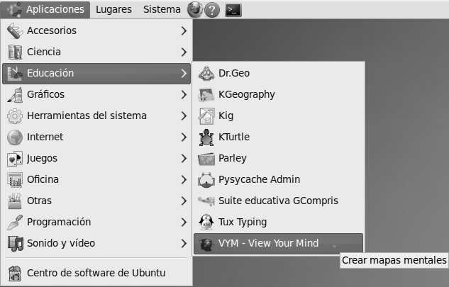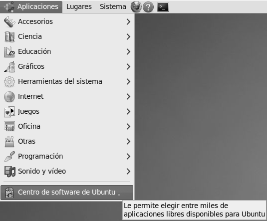 Si no encuentras los programas tendrás que instalarlos. En Ubuntu que es una distribución de GNU/Linux se haría de la siguiente manera: haz clic primero en Aplicaciones, luego en Centro de Software de Ubuntu. |