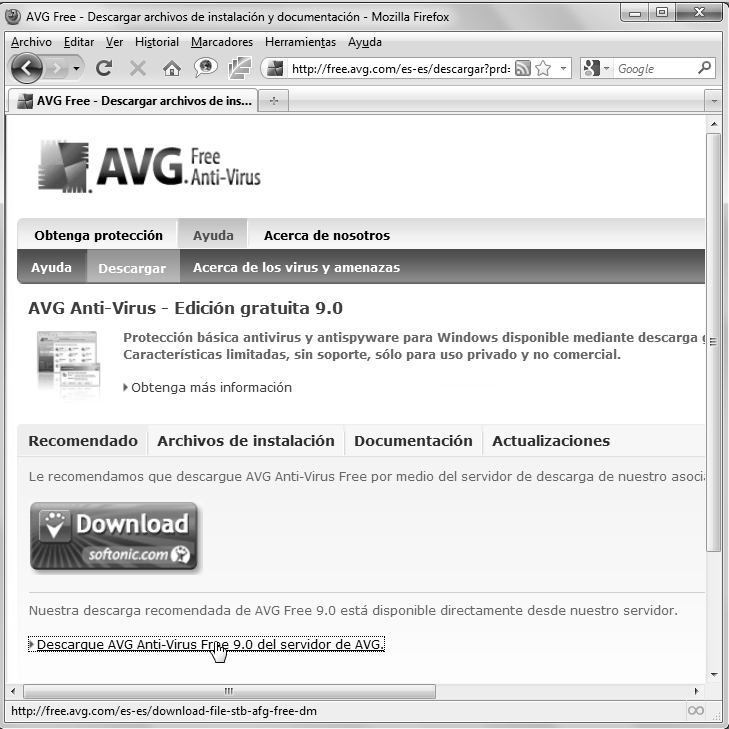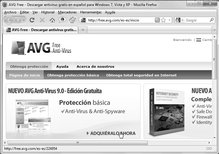 Ahora bien, veamos cómo instalar y utilizar un antivirus: 1. Abre Firefox y escribe http://free.avg.com en la barra de direcciones. |