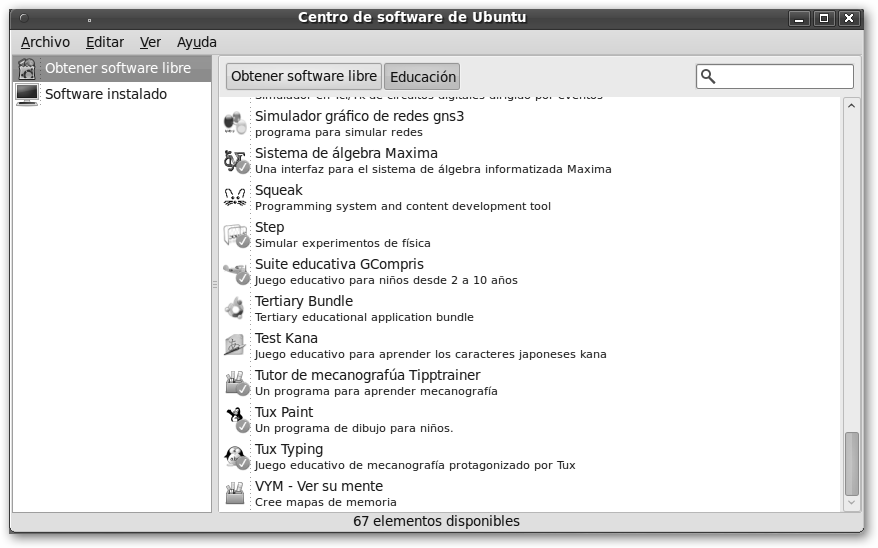 Elige una categoría o departamento, por ejemplo, Educación. Te saldrá un listado de aplicaciones de la categoría Educación. Haz clic sobre la aplicación a instalar. |