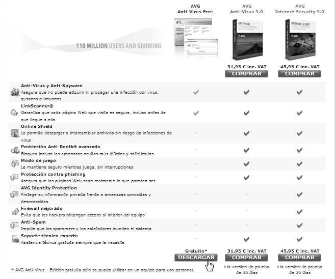 2. Descarga la versión gratuita: AVG Anti-Virus Free.