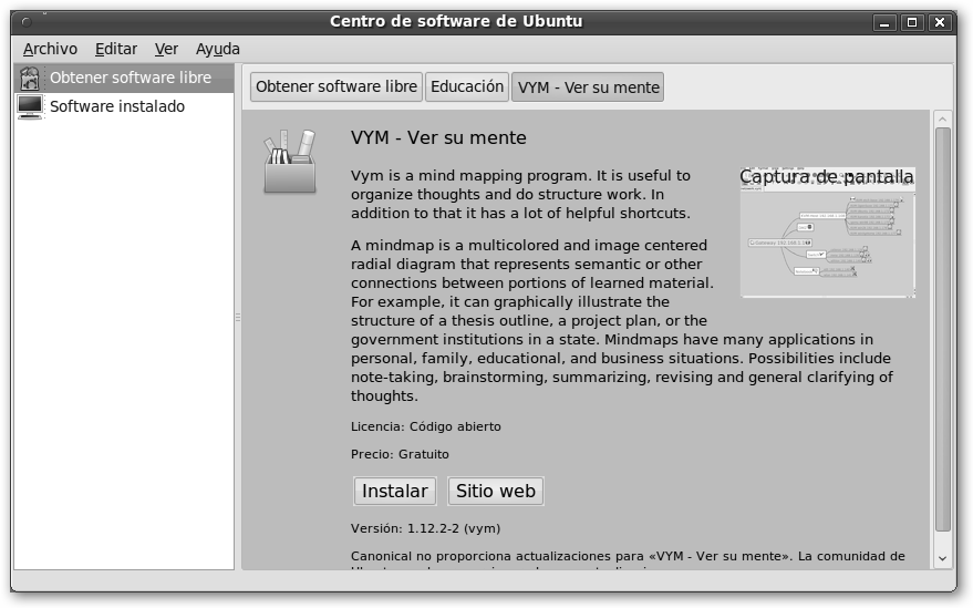 Se te presenta una captura de pantalla y una pequeña descripción del programa. Pulsa el botón Instalar. |