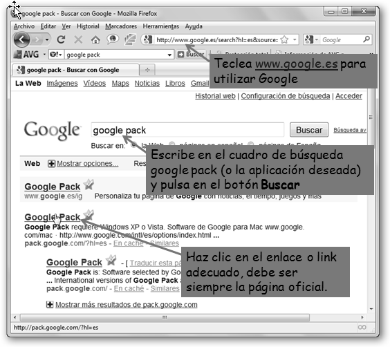 - Los navegadores web Google Chrome y Firefox y la barra Google para Internet Explorer.