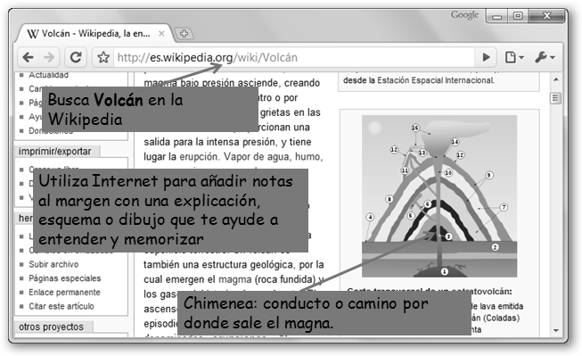 Imagina que tienes que memorizar lo siguiente: “Un volcán es una fisura en la corteza terrestre de la cual surgen distintas erupciones a partir de una chimenea” y no sabes que es la chimenea.