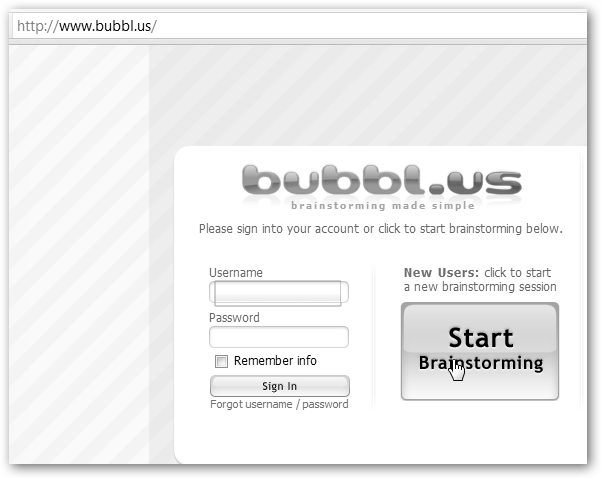 Una vez dado de alta, navegarás a www.bubbl.us, introducirás tu nombre de usuario, tu contraseña y pulsarás en Sign in. |