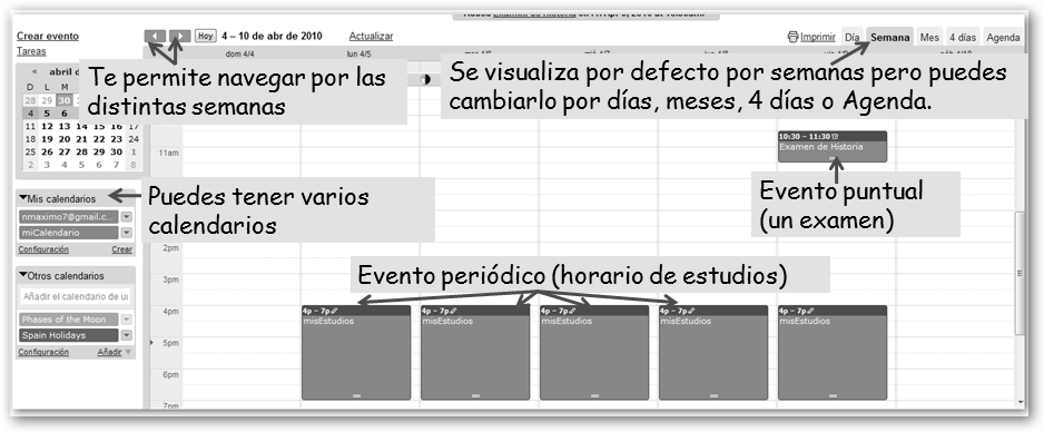Si quieres estar bien organizado, que no se te olviden las fechas de los exámenes, trabajos, etc. crearte un calendario con Google Calendar es una buena idea. La gran ventaja de esta herramienta es que puedes compartirla con tus padres, compañeros, amigos, etc.