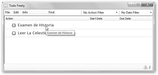 En GNU/Linux dispones de aplicaciones similares como Tasque y Lista de pendientes (GToDo), en Windows prueba Todo Freely (www.todofreely.com).