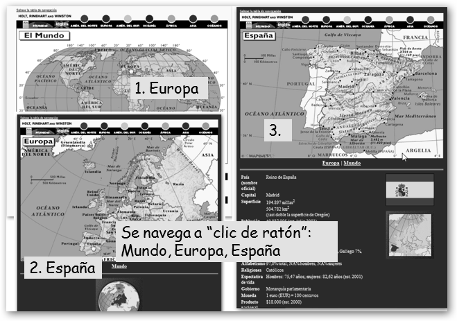 Otra página web muy interesante es HRW Atlas Mundial en go.hrw.com/atlas/span_htm/world.htm donde dispones de mapas físicos y políticos del mundo, continentes y países. Finalmente, dos de los recursos más interesantes para aprender Geografía e Historia son Google Earth y Google Maps. |