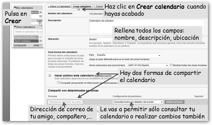 3. Crea un nuevo calendario.
