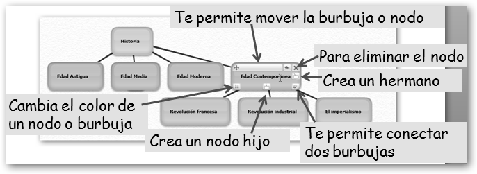 En la figura se observa que la Historia se divide en Edad Antigua, Edad Media, Edad Moderna y Edad Contemporánea, es decir, éstas serían nodos hijos de Historia. |