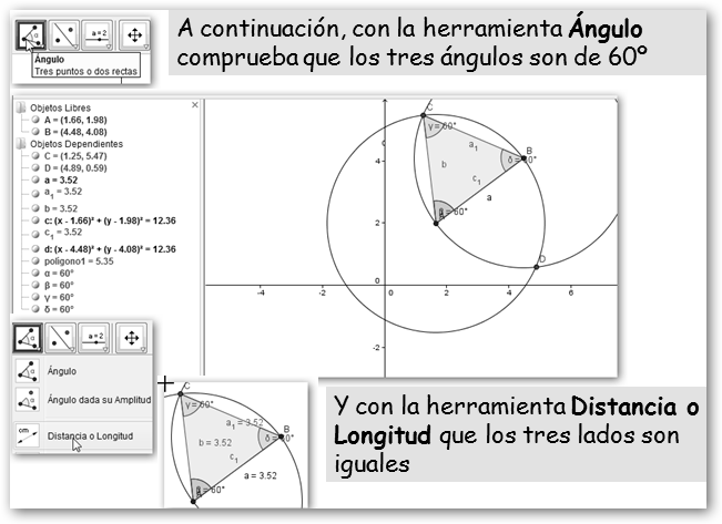 2.6. Dibuja el triángulo equilátero cuyos vértices son A, B y D (o C).