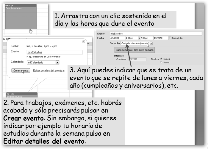 4. Añade eventos a tu calendario.