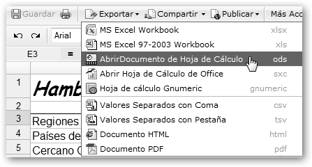 ¡No olvides guardar periódicamente tu trabajo! ¿Qué podemos hacer ahora? Podemos imprimirlo (a la derecha del icono de Guardar), exportarlo a Excel, Gnumeric, Calc, etc. (observa la figura). |