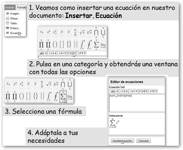 Veamos como insertar una ecuación. |