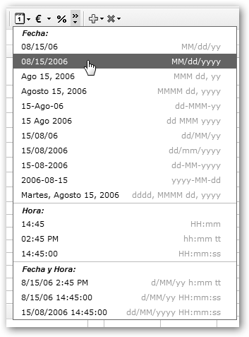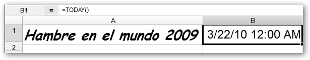 Asegúrate de que la función esté precedida por un igual “=” para que la hoja de cálculo lo interprete como una fórmula y no un texto o cadena. Para cambiar el formato de la fecha selecciona el icono Fecha/Hora y elige el que más te guste.