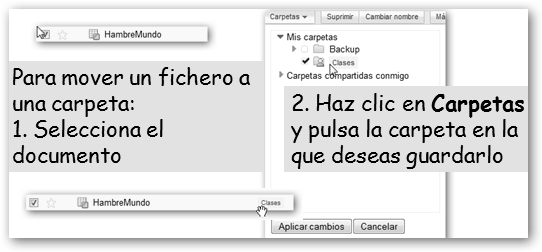 Finalmente, comprueba que Google Docs nos permite organizar nuestro entorno de trabajo con carpetas, eliminar y compartir documentos, subir archivos a nuestro equipo, etc. |