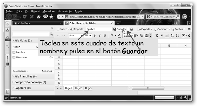 Una de las primeras opciones es Zoho, navega a http://sheet.zoho.com.