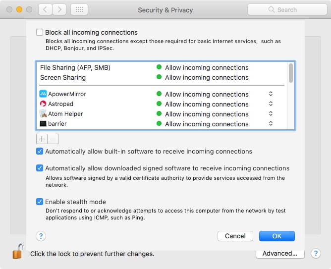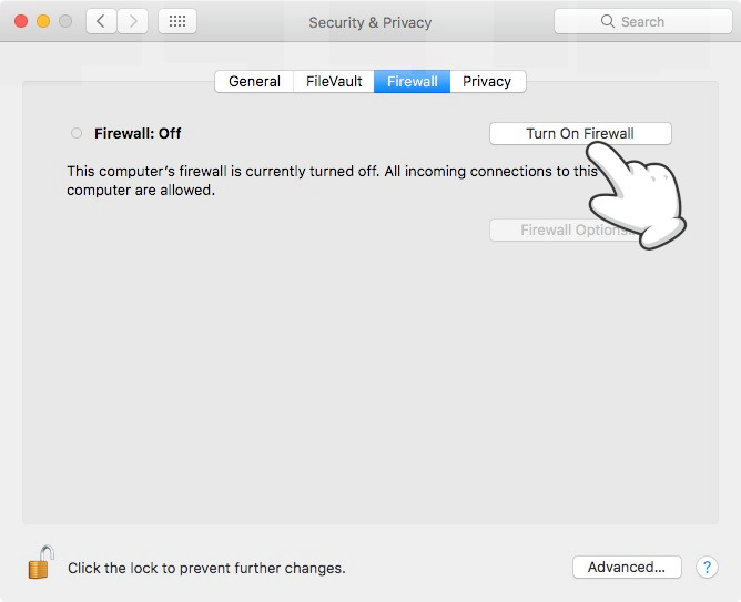 Apple integrates within macOS a firewall that controls all incoming and outgoing connections to your Mac.