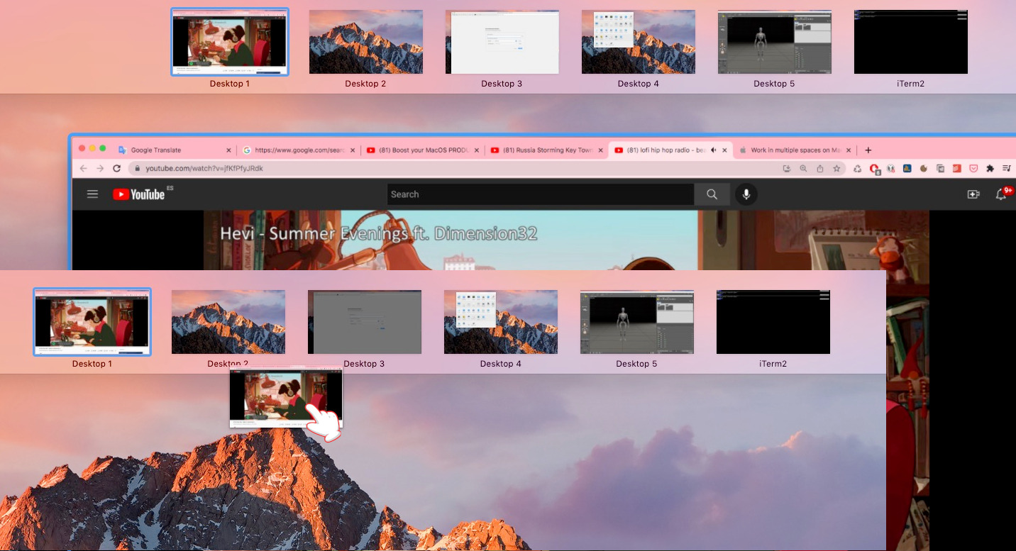 Spaces are macOS’s virtual desktops. Mission Control is a Mac feature that lets you see all your open windows and desktop spaces. To Open Mission Control, press the F3 key or click on the MIssion Control icon on the dock. To move an application to a particular space, just drag it with the mouse and drop it on the chosen space. macOS spaces