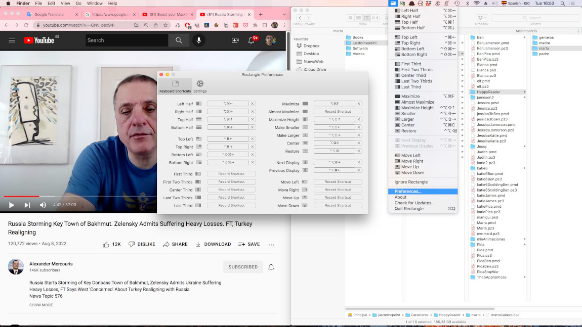 Learning the shortcuts and using them is a huge performance multiplier because this skill can be applied to all of your applications and speed up your daily workflow. You can get a keyboard shortcuts reference by clicking on the Rectangle icon in the top menu bar. Besides, you can move a window to another monitor: Control ⌃ + Option ⌥ + Command ⌘ + →/←-